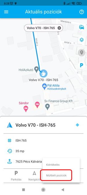 hanem az eszköz adatlapról is eléred, a két Korábbi opció közül a Múltbéli pozíciókra-ra koppintva.