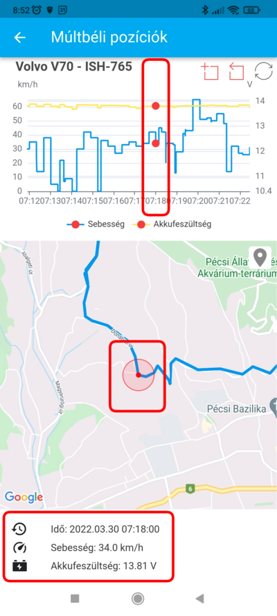 A múltbéli pozíciók funkcióban eszközeid korábbi útvonalait részletesen, a beküldött adatokkal együtt vizsgálhatod. Mindezt egy hibrid, grafikonnal kiegészített térképes felületen teheted meg. A funkciót nem csak a menüből nyithatod meg,